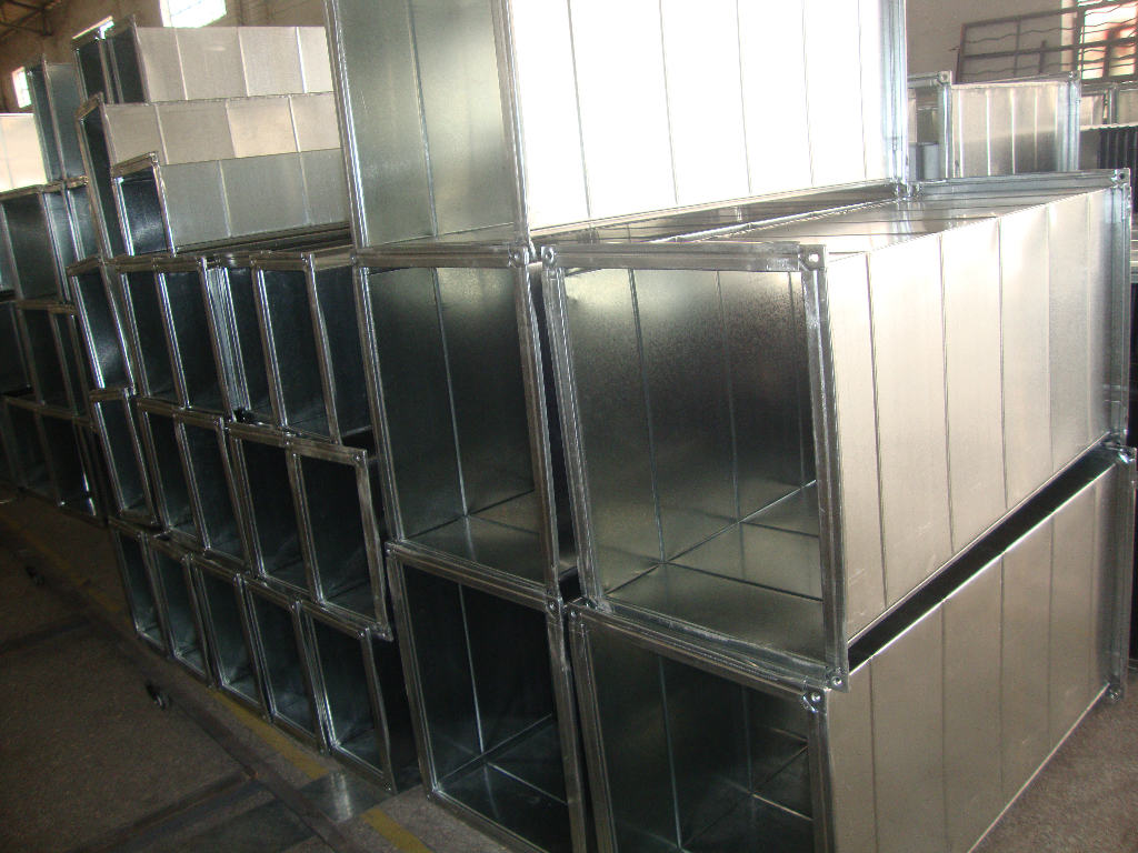 共板法蘭主要由角碼、法蘭夾,及與風(fēng)管一體相連的法蘭連接,這種形式風(fēng)管雖然造價(jià)較低(減少了角鋼用量,減少了制作角鋼法蘭的人工用量),但是實(shí)際應(yīng)用起來不如角鋼法蘭牢固,漏風(fēng)量也較大,且必須通過機(jī)床進(jìn)行加工,手工制作幾乎不能實(shí)現(xiàn)它的制作,通常只應(yīng)用于新風(fēng)系統(tǒng),空調(diào)系統(tǒng)等,排煙系統(tǒng)還是經(jīng)常用角鋼法蘭連接的風(fēng)管。但是人防工程是絕對(duì)不允許用共板法蘭連接。